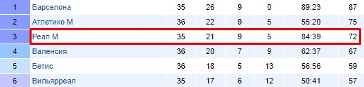 Серебро, это, конечно же, лучше бронзы, но и третье место не столь уж и плохо. «Реал Мадрид» не будет выкладываться по полной программе, чтобы догнать матрасников, в уме они это держат, но если не получится, то сильно не расстроятся. Еще раз надо сказать, что для них сейчас важнее Лига чемпионов.