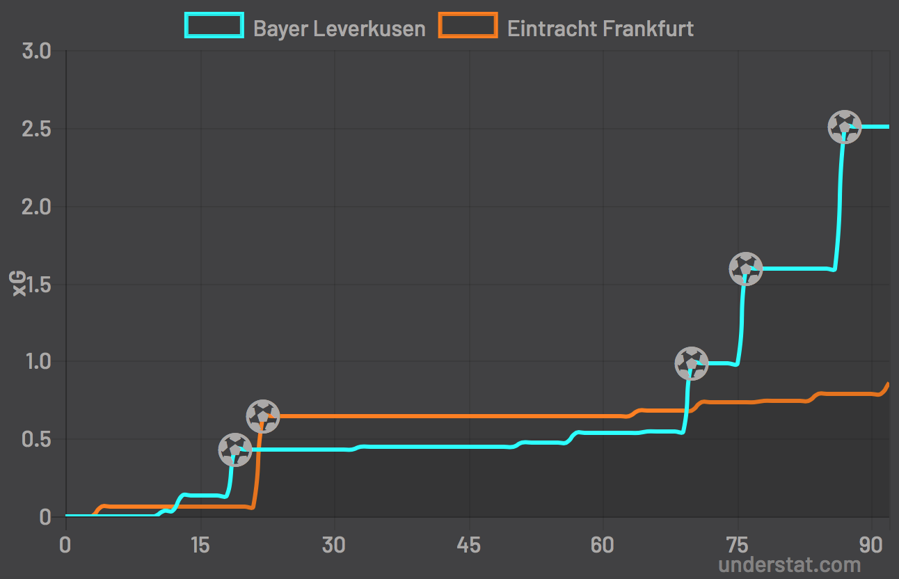 Шальке отыгрался, проигрывая по ходу матча 0:2. Причем свои голы «кобальтовые» забили на 81-й и 94-й минутах. Но при этом Шальке показал чуть более высокий xG, нанес больше ударов (15 против 6).