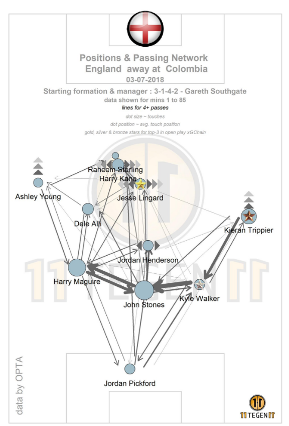 Теперь давайте посмотрим на карту передач сборной Англии.
