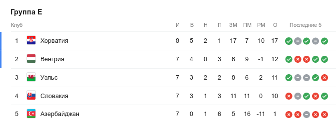 Словацкая сборная занимает предпоследнее место в турнирной таблице, но находится ближе к первому, чем к последнему: от уже вышедших на Евро хорватов их отделяют 7 очков, тогда как от никуда не попавших азербайджанцев — 9.