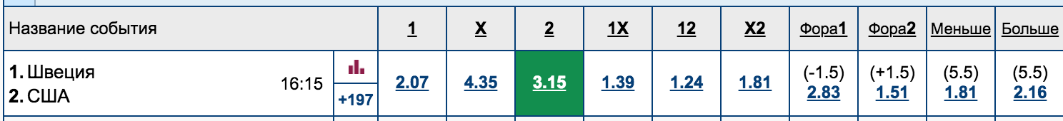 Любопытно было, как все-таки букмекеры расставят коэффициенты на этот матч. Конечно, можно было ожидать, что шведы будут фаворитами, но не великоват ли коэффициент на американцев?