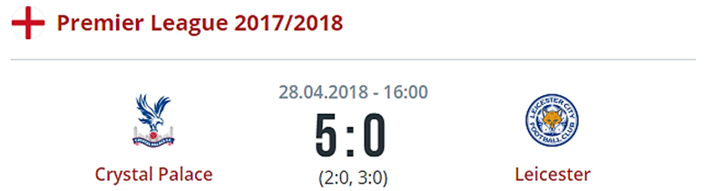 Сразу пять голов влетело в ворота «Лестера», а лисы даже не сумели забить гол престижа. Видна и мотивированная виктория «Вест Хэма» опять же с сухим счетом, которая была одержана уже на поле у рассматриваемого нами коллектива. Все же можно смело сказать, что под конец сезона игра у этого крепкого середняка сильно разладилась.
