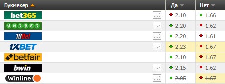 И здесь надо отметить, что букмекерские конторы выставили достаточно высокие коэффициенты на «Тотал меньше голов».