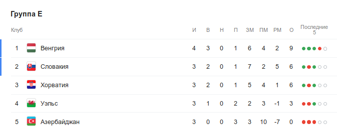 Несмотря на текущее положение команды Райана Гиггза, в целом у валлийцев остаются неплохие шансы на выход в финальную часть турнира — стоящие выше хорваты и словаки, сыграв тоже по 3 матча, имеют в зачёте по 6 очков и завтра проведут между собой очную встречу. Если победят вице-чемпионы мира, команда с Великобритании в случае своей победы поднимется на строчку выше.