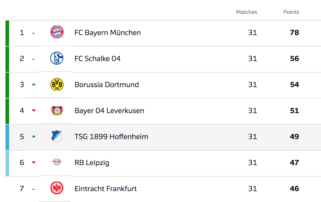 Итак, «Хоффенхайм» отстает на 2 очка из идущего четвертым леверкузенского «Байера».