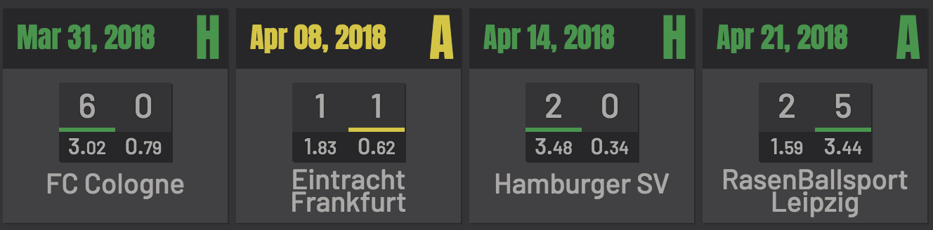 Посмотрите насколько остро «Хоффенхайм» играет в атаке. В 3-х из 4-х последних матчей команда продемонстрировала очень высокий xG (больше 3-х).