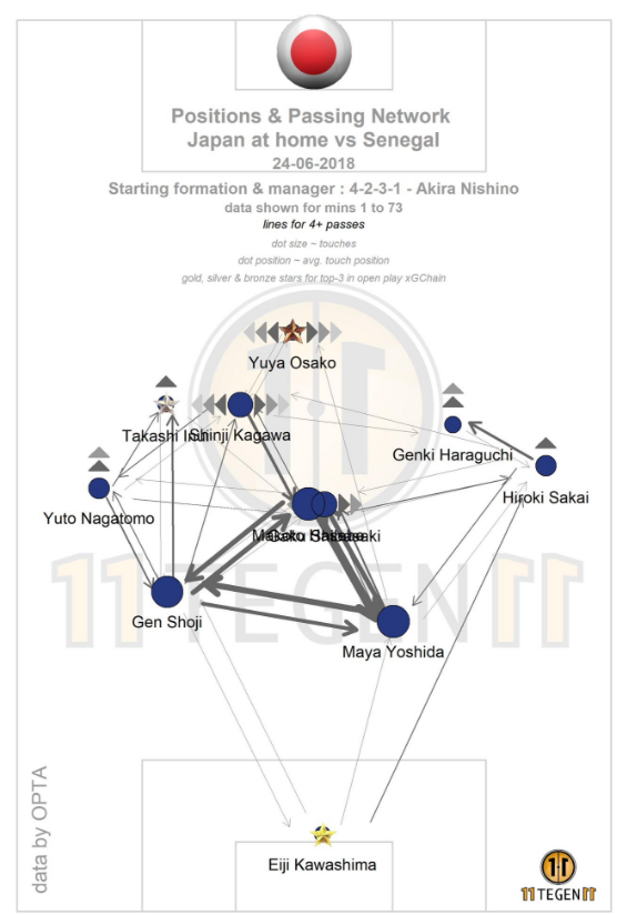Японцы постоянно строили треугольник в центре поля и за счет быстрых точных передач проходили центр. При этом фланги, правда, оставались пустыми. А ведь, если бы японцы смогли увеличить ширину своих атак, то вообще все было бы интересно у них в атаке.