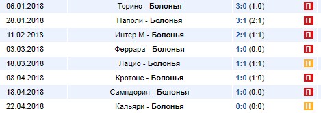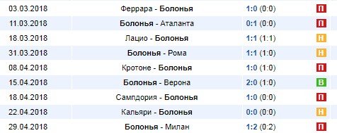 Вот такие результаты продемонстрировала «Болонья» в последних турах. С одной стороны они не сильно впечатляют, слишком мало побед, а с другой стороны обращают на себя внимание два ничейных результата с римскими коллективами. Да и в целом команда не проигрывает разгромно, борясь до последних секунд игры.