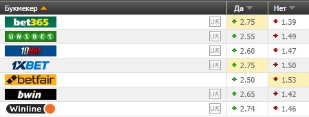 Наблюдается сильный прогруз на такой вариант пари, как «Обе команды забьют – нет».