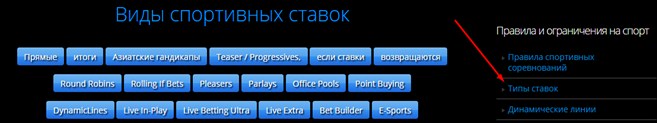 Не зарегистрировавшись сложно понять, какие виды пари и какое их количество используется при росписи спортивных поединков. Но хитрость букмекера можно легко обойти при помощи правил самой конторы. Там есть один интересующий нас раздел: «Типы ставок».